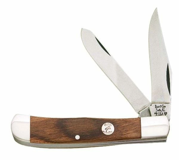 Bear & Son Cutlery 297BBR Professional Lockback, Rosewood Handles, Brass Bolster, Leather Sheath
