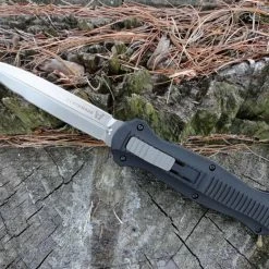 - Double Edge Spear / Satin Finish Blade / Black Handle