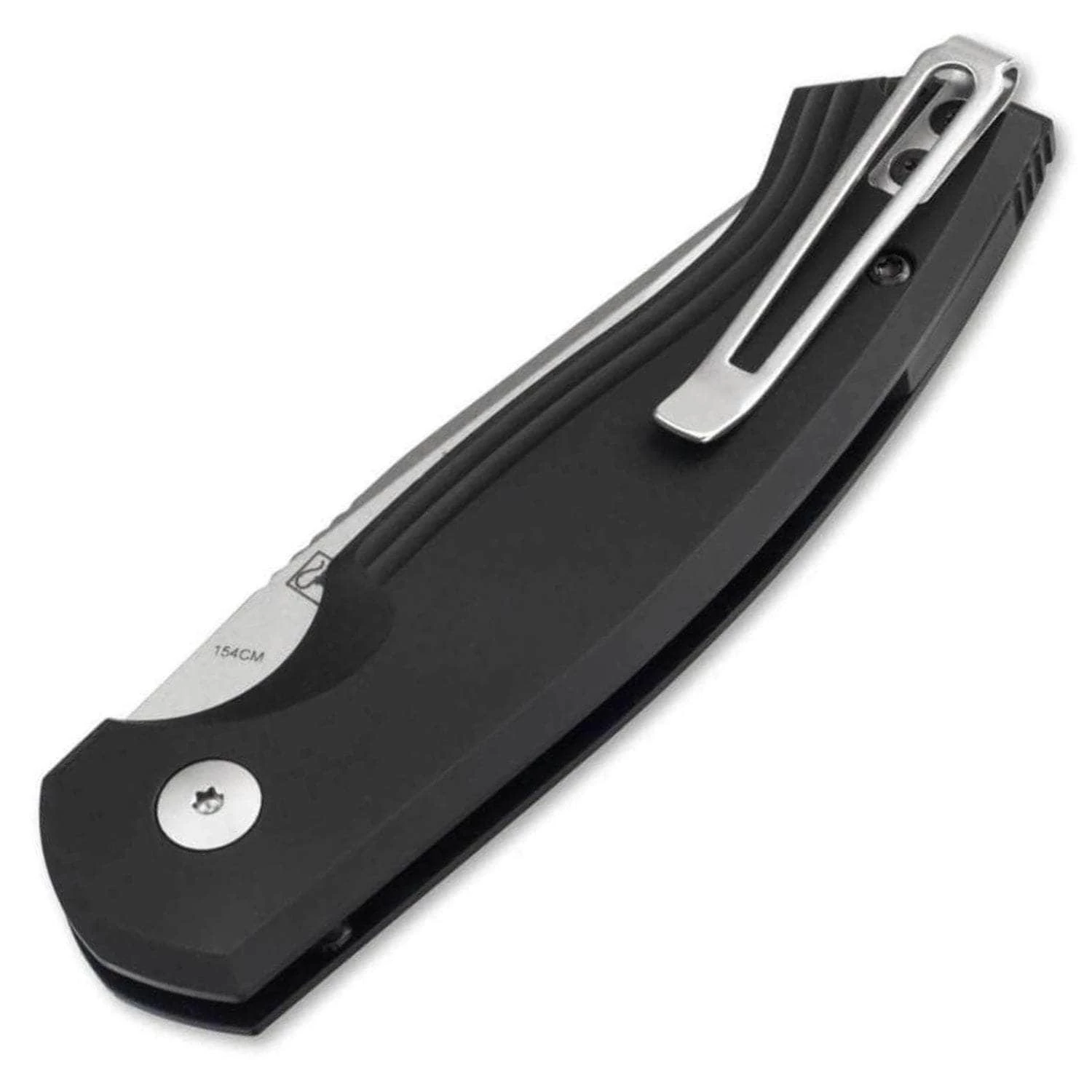 The handle made of anodised 6061-T6 aluminium is ergonomically shaped and sits securely in the hand, even for difficult tasks. The wave-shaped serrations on the underside promise additional grip. The knife also irritates its ‘prey’ with a convertible clip (tip-up/l-r) and a practical lanyard hole. Developed in collaboration with the switchblade specialist Hogue, the Karakurt is made in the USA and impresses with perfect workmanship. With high-quality nylon case for storage.