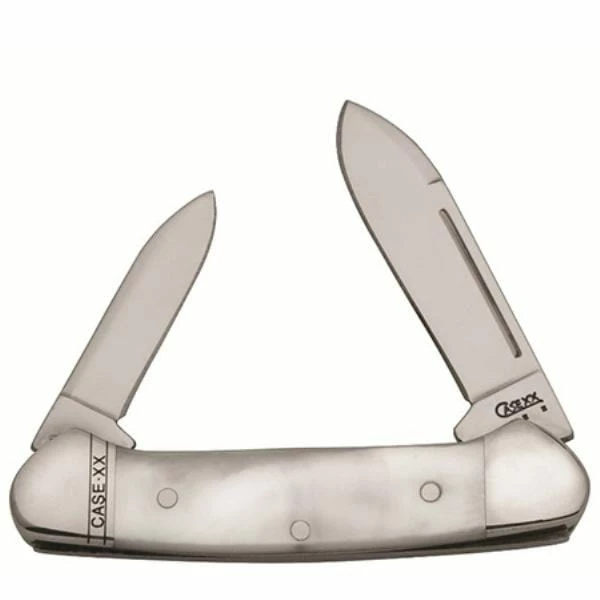Catalog:Case KnivesItem:11931Family:Genuine Mother-of-Pearl Embossed BolsterLoc:30-3-CPattern:82132 SSType:FoldingLock:Slip JointBlade:Tru-Sharp® Surgical SteelBlade Type:Spear and penBlade Finish:High PolishedHandle Material:Mother-of-PearlHandle Jigging:SmoothOverall Length Closed:2 3/4 inchesWeight:4.35 ozBolsters:Nickel SilverLiners:Stainless Steel