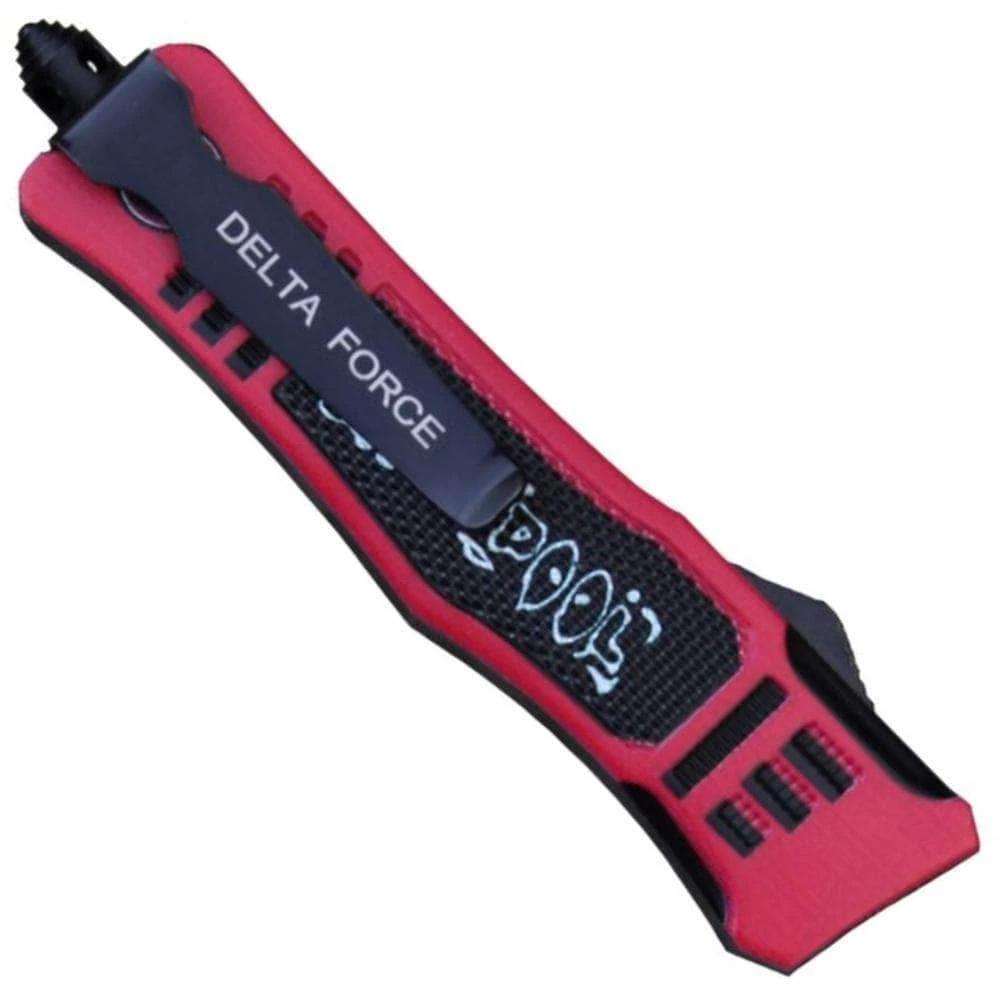 This Delta Force Mini model is equipped with a bead blasted tanto point style blade with a plain edge. The mini-sized Delta Force knife offers a heavy-duty build in a compact size. It’s outfitted with a 440 steel blade that has heat-treated for a high-performance cutting edge. The blade has a bead blast finish for great wear resistance. A stainless steel reversible pocket clip and glass breaker finish off the tactical design. Comes with a black nylon belt sheath.