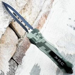 Delta OTF Out The Front Automatic Dual Side Serrated Knife,Camo