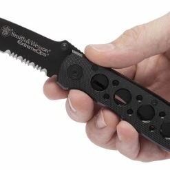 Smith & Wesson Bullseye Extreme OPS, 3.2″ Combo Blade, Black Aluminum Handle – CK5TBS