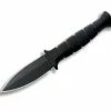 Features a 2.31 in. black powdered coated AUS8A serrated blade and a 3.32 in. black zytel handle. Comes complete with a black hard plastic sheath.