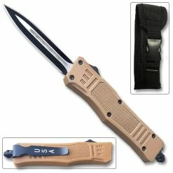 Brown Legacy OTF Knife Spear Point, Double Edged Blade