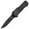 This Legends Micro OTF Stiletto Blade Knife Black has a 440 stainless steel blade powder coated black and with Sharp edge stiletto styling. The Handle and housing are high grade CNC aluminum anodized black. The release Mechanism deploys the Blade both in and out.