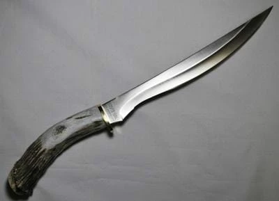 D2 steel is an air hardening, high carbon, and high chromium tool steel possessing extremely high wear resisting properties. The high chromium content provides good corrosion resistance, (but it can rust if it is not properly taken care of). We heat treat our D2 blades to a 60 Rockwell hardness and the blades will retain their factory edge for extended periods of heavy use. When it does come time to re-sharpen, this high carbon tool steel is easier to sharpen than stainless steel, (the edge will not crumble or roll like stainless steel does when sharpening). D2 steel is primarily used by the best custom knife makers, and anyone whom has ever used a good D2 steel blade in the field, raves about the steels cutting ability, durability, and edge holding properties. We strongly believe D2 is the best steel you can use for a hardcore, working knife! The Crown Series features shed North American Deer and Elk antler crown/burr handles and the series features 15 designs. Every style is accompanied with a handmade leather sheath and limited life time warranty.