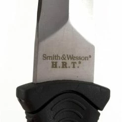 Smith & Wesson H.R.T. Full Tang Fixed Blade Knife, 7Cr17 High Carbon Stainless Steel Duel Edged Spear Point Blade, Black TPR Handle with Lanyard Hole and Black Nylon/Fiberglass Belt/Boot Sheath with Six Grommet Holes for Lashing to Pack or Gear