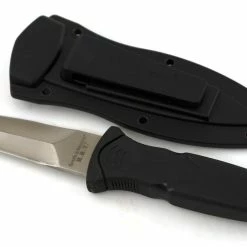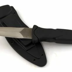 Using a black TPR (thermoplastic rubber) handle, the boot knife is comfortable to hold and stays in the hand when wielding.