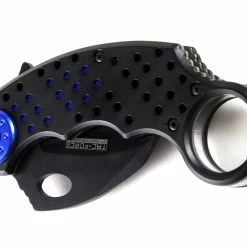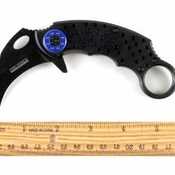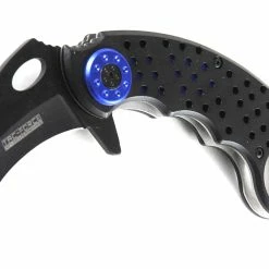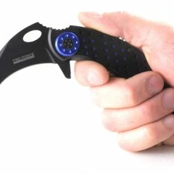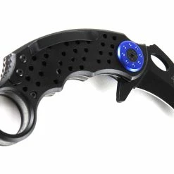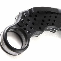 In the search of an efficient agrarian tool, Indonesian farmers originally designed karambit knives to emulate the slashing claws of jungle cats like tigers and jaguars. Western knifemakers, inspired by the farmers’ ingenuity, took the curved design further to make it deadlier and faster. These days, the karambit knife looks less like a big cat’s claw and more like a Velociraptor’s. This particular knife’s design maximizes speed and grip, making it a formidable ally in any dark alley. It’s been updated with an all-black high carbon steel blade, which can be whipped out in a flash with a fast action Assisted Opening mechanism. Get ahold of the speed and power of the world’s deadliest predators.